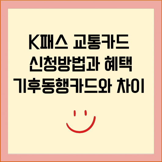 01 K패스 교통카드은 무엇인가요?02 K패스 혜택03 K패스 지급 기준04 K패스 신청방법05 어떻게 사용하면 될까?06 기후동항카드와 차이점 물가가 오르며 교통비 부담도 커진 요즘, 정부가 국민들의 교통비 절감을 위해 도입한 ‘K패스 교통카드’가 큰 주목을 받고 있습니다. 특히 대중교통을 자주 이용하는 시민이라면 꼭 알아야 할 정책으로, 정기권이나 정액권과는 달리 환급형 혜택이 제공되어 실속 있는 교통비 절약이 가능합니다. 신청 안하면 손해보는 K패서 교통카드, 지금부터 알아보시고 꼭 신청하세요!! 01 K패스 교통카드는 무엇인가요?K패스 교통카드는 국토교통부가 2024년 7월부터 전국적으로 시행한 대중교통비 환급 지원 제도입니다. 만 19세 이상 국민 중 일정 기준 이상으로 대중교통을 이용한 사람에..